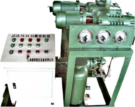上海建鹤真空设备有限公司JZJS 型真空机组是以罗茨真空泵为主泵,以双级水环式真空泵为前级 泵,通过压力继电器或电接点真空表设定控制来实现罗茨泵、水环真空泵的 自动启闭,自动过载和自动过热保护的成套真空获得设备。